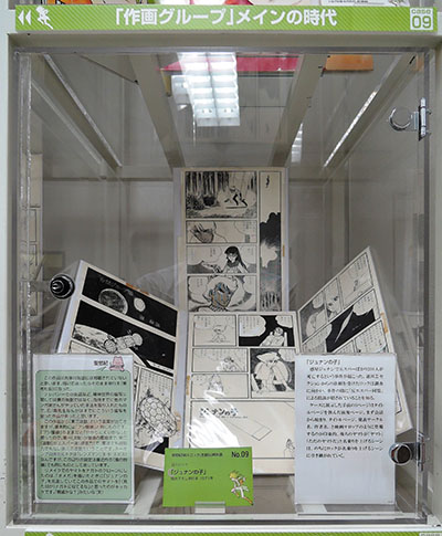 手前の原画は、「ジュナンの子」よりロックの意識が朦朧となっているシーンなど。点描や円が繰り返す効果、白抜きの効果など、当時は当たり前だがすべて手描きである。そこに、効果的にトーンが配されている。