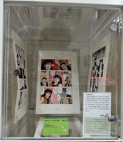 後ろは、同ラストシーン近くの原画である。その左のパネルは本作をリメイクした「久遠の瞳」(ケース22)のラストシーン。ふたりが並ぶよく似たシーンがみられる。大幅に描き換えられたこのリメイクにおいて、このように似ているシーンは珍しい。
