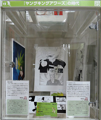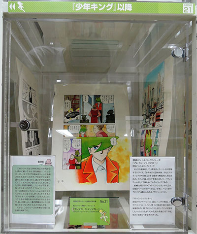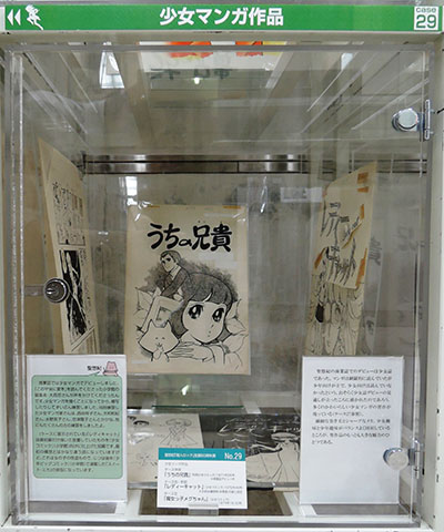 (ケースに展示されている)「レディキャット」は最初扉だけ描いて放置していたものを『少女コミック』(小学館)向けに仕上げた短編です。最初の構想とはかなり違う話になっていますけど。これは女の子の怪盗もので、じつは後年『少年ビッグコミック』(小学館)で連載した「スイート・ミカ」の原型になっています。