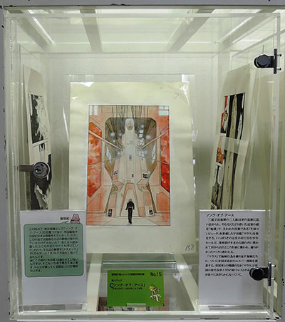 ここに展示した「SFファンと そうでない人に」と入った青い紙は、「超人ロック」第1作に添えられた聖の手による表書きである。ロックファンなら一度は目にしたことのある言葉であり、これからロックを知る人にも心に留めてほしい言葉である。