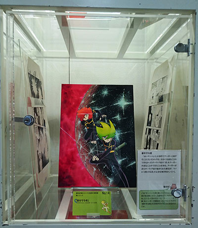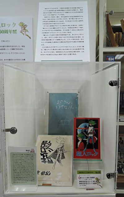 ここに展示した「SFファンと そうでない人に」と入った青い紙は、「超人ロック」第1作に添えられた聖の手による表書きである。ロックファンなら一度は目にしたことのある言葉であり、これからロックを知る人にも心に留めてほしい言葉である。